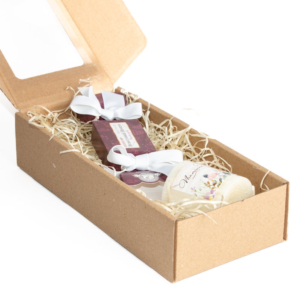 Ručně vyráběná svíčka v dárkové krabičce s elegantním přírodním mýdlem s vůní Burgundského hrozna.