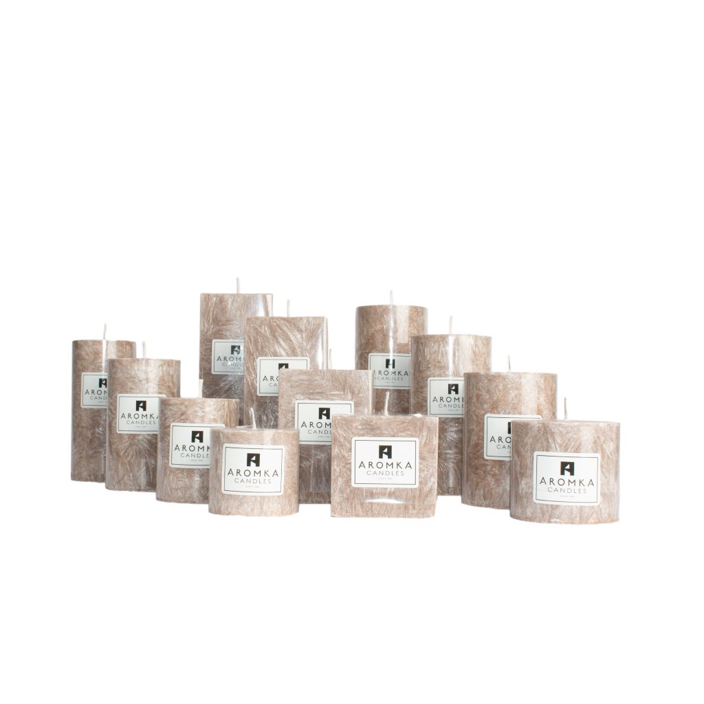 Přírodní vonná svíčka palmová - AROMKA - Kaskáda 8 válců a 4 hranoly v průmyslovém balení - HŘEJIVÉ POKUŠENÍ-SPICET TEMPTATION