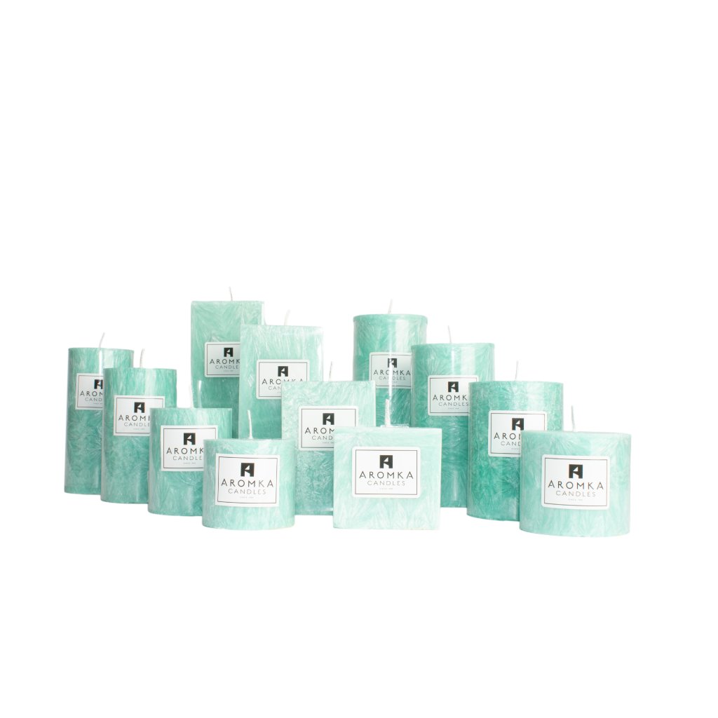 Přírodní vonná svíčka palmová - AROMKA - Kaskáda 8 válců a 4 hranoly v průmyslovém balení - ZELENÁ OÁZA-GREEN OASIS
