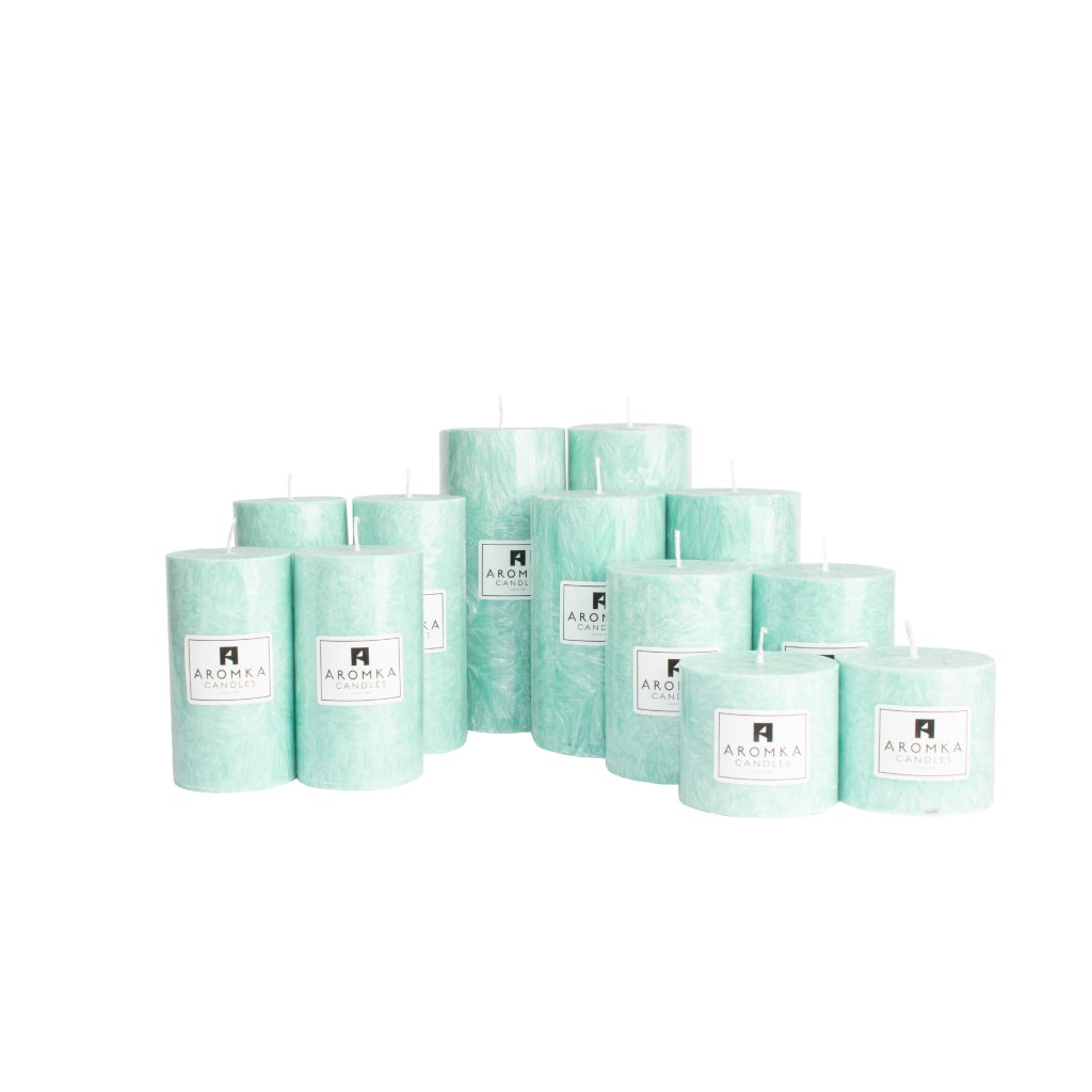 Přírodní vonná svíčka palmová - AROMKA - Sada 12 válců v průmyslovém balení -ZELENÁ OÁZA-GREEN OASIS
