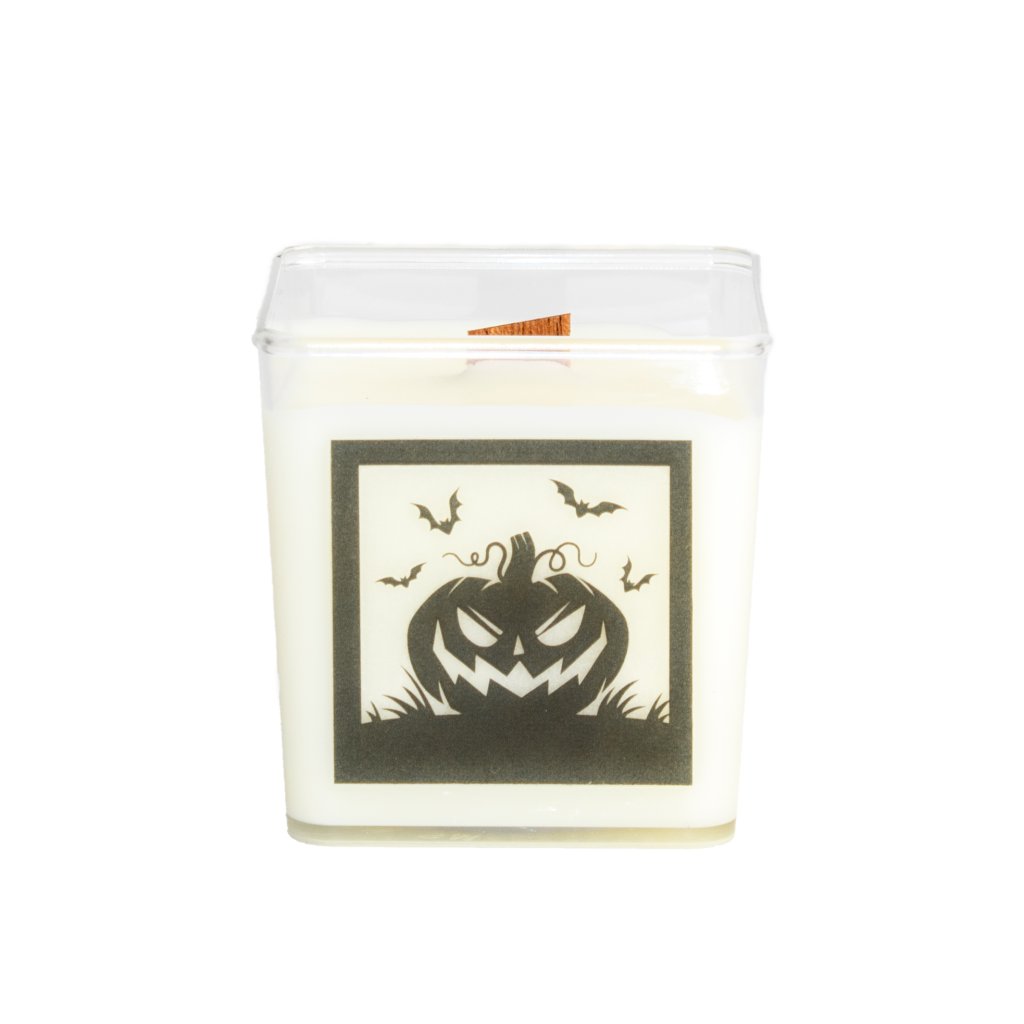 Přírodní vonná svíčka sójová - AROMKA -Carbon kostka s dřevěným knotem, 80 ml - HALLOWEEN - Pečená dýně